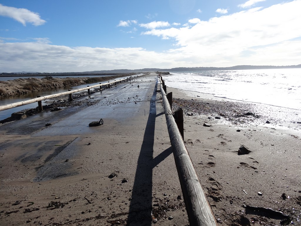 Le niveau de la route par rapport à le mer la rend vulnérable à la montée des eaux et ces invasions de la mer menacent l'existence même de la route et, à terme, celle de l'ensemble du tombolo.